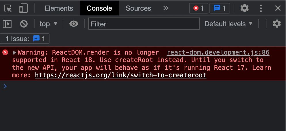 The library update alone does not change much. If we start the app now, it will still use the legacy rendering of React 17. This is indicated by a warning in the console: